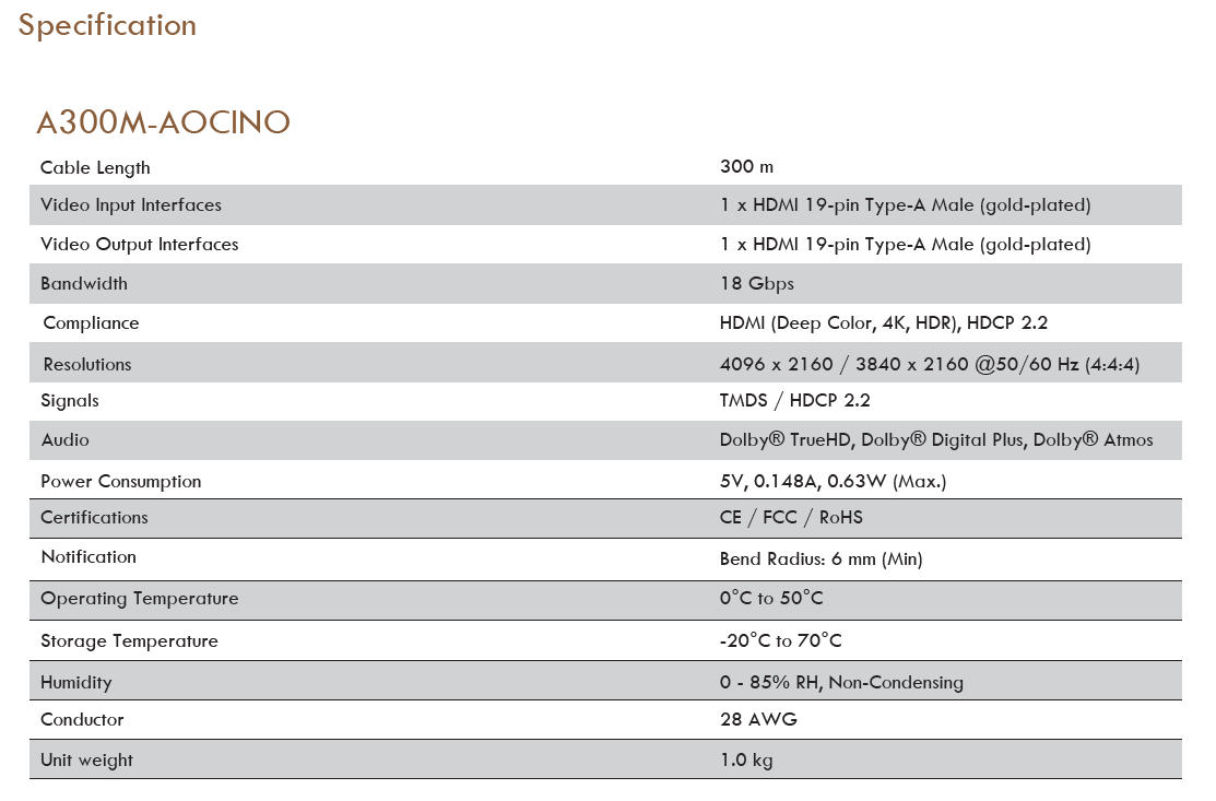 - The optical cable is available in 300 m with full support of 4K/UHD. It is fully compliant with HDCP 2.2 standards and meets HDMI, deep color, and 18 Gbps Bandwidth. Supported HDR10 and Dolby Vision. Support all digital audio Dolby True HD, Dolby Digital Plus, Dolby Atmos