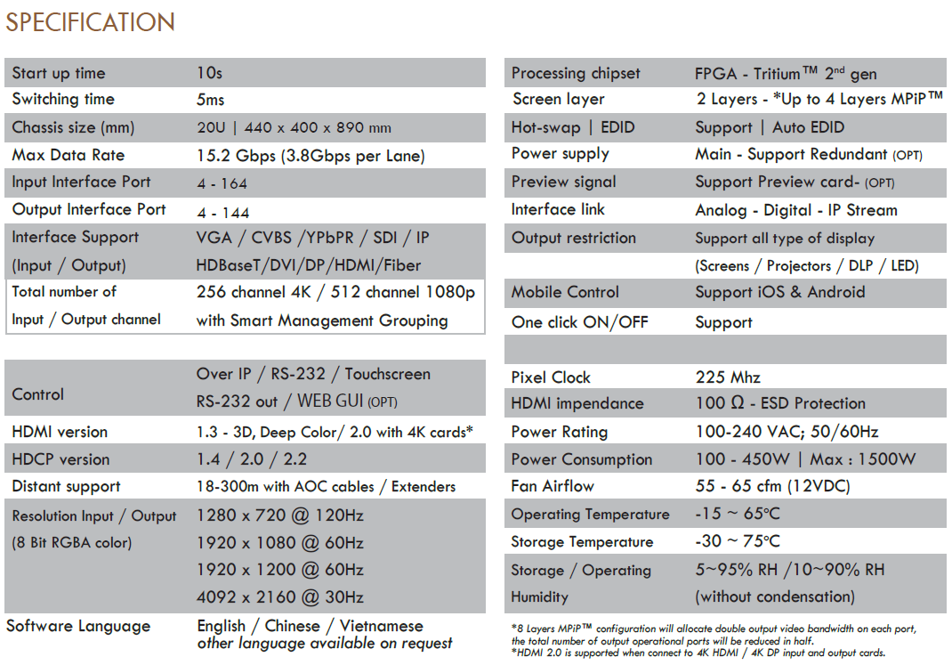 Without the use of PCI – Express card, the unit can work flawlessly when adding or editing the total layout of the videowall set up. As each of the FPGA chip is working independently, user can replace or add new input / output card without turning off the whole chassis.