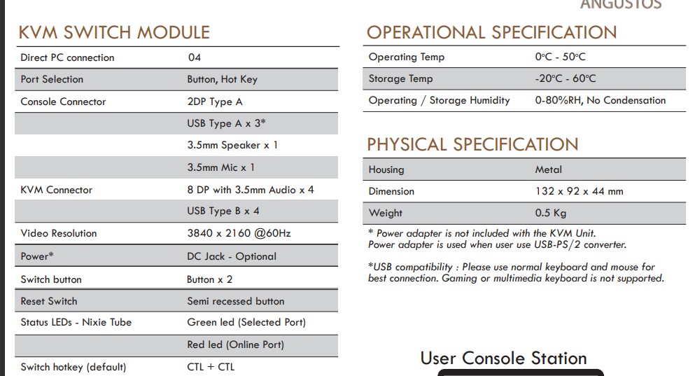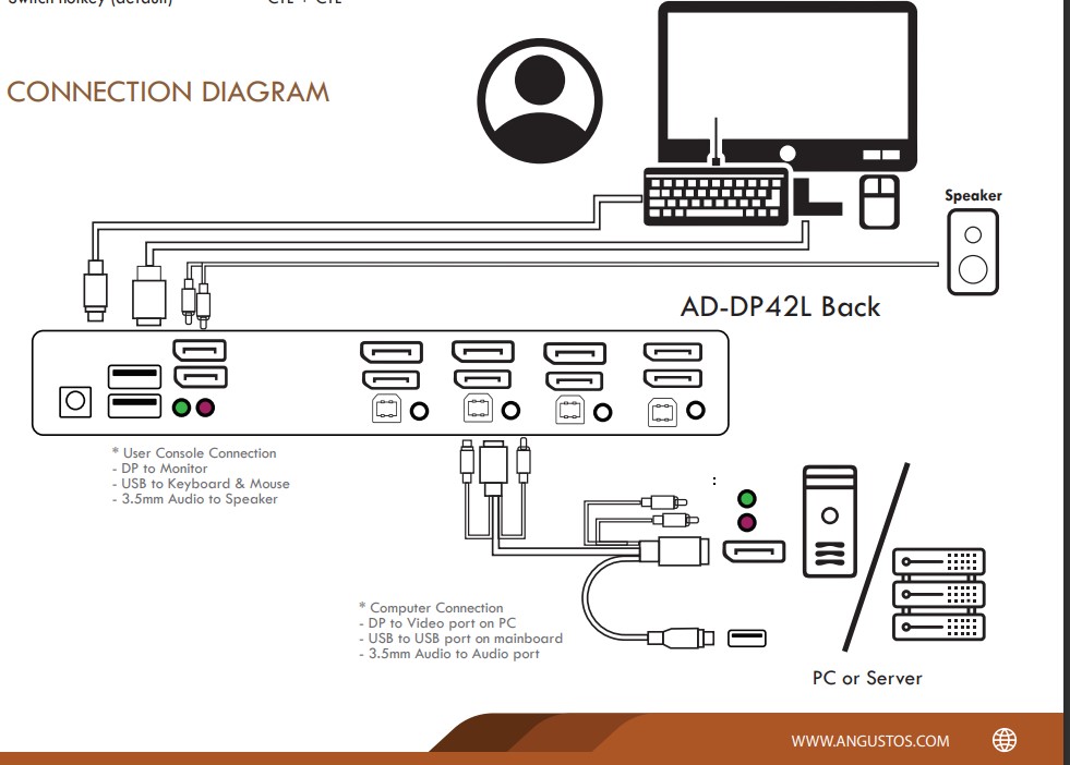 - Angustos AD-DP42L Desktop KVM Switch is optimized for high density office in modern workstation set up.