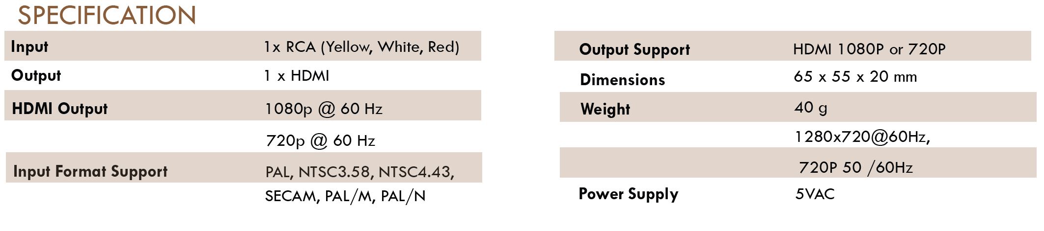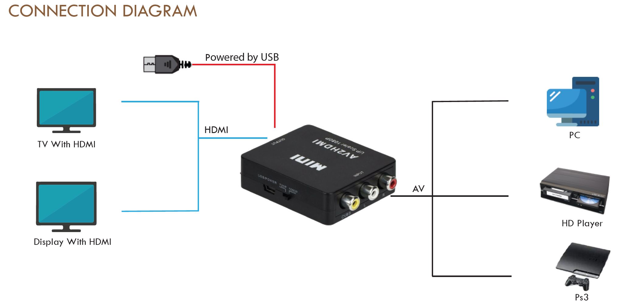 - Mini AV to HDMI 1080P Converter