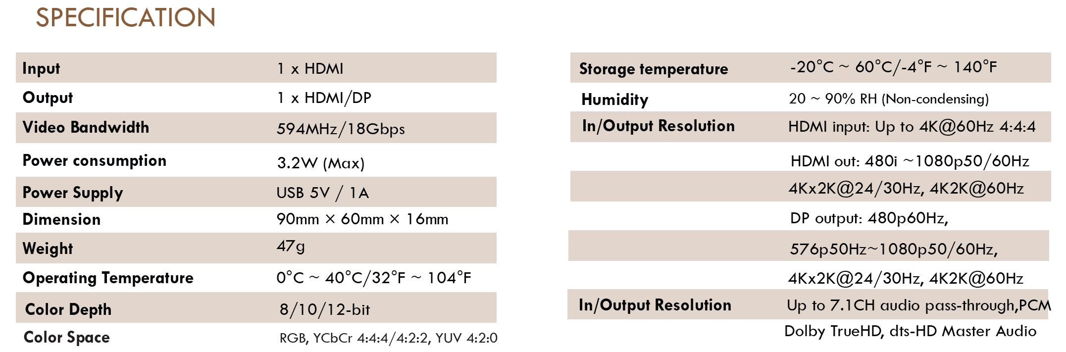 - Support 18Gbps HDMI video bandwidth