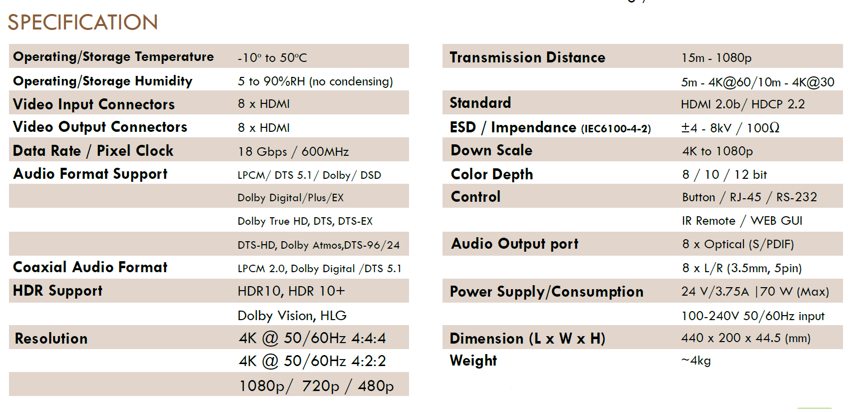 - HDMI 2.0b, HDCP 2.2/1.4 Compliant