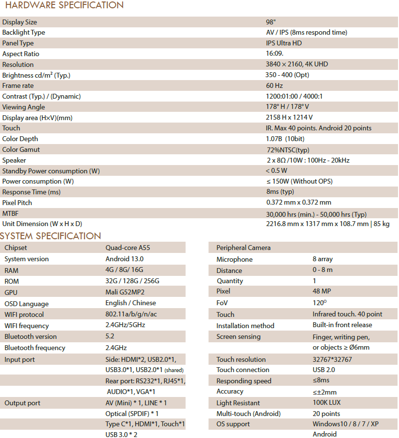 Powerful but easy to use: Built-in speaker, microphone(optional), HD camera (optional), shorten the distance with your audiences in your online classroom and meeting room with impressive Interactive IR-touch technology, smooth
