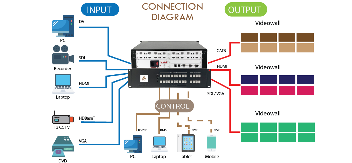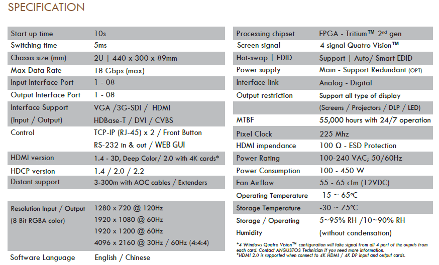 AMC4-0808-VIDEO WALL CONTROLLER with SEAMLESS – AMC4 Series 08 x 08 QUATRO VISION – 4K@60Hz Video Wall