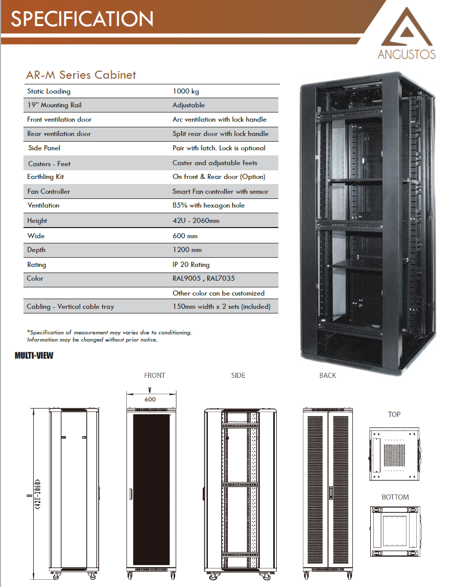 Angustos AR-M42612-LFS is a Medium Duty Rack Cabinet that is suitable for high density modern Data Center.