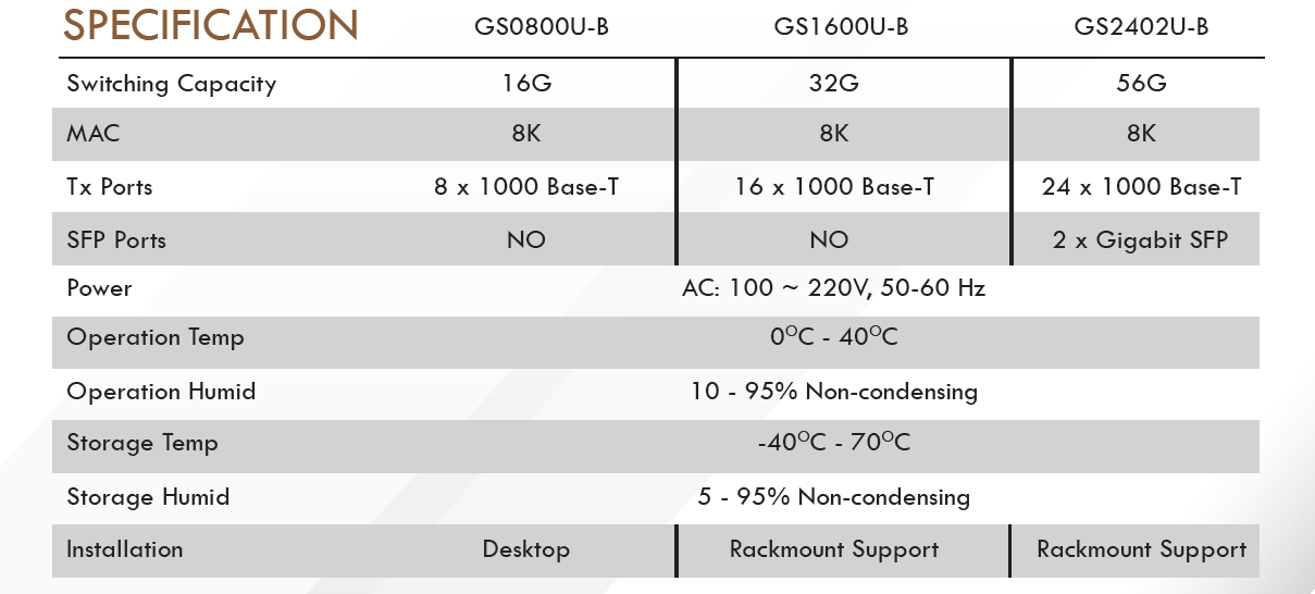 Angustos GSU Series is Full-gigabit, large power network switch suitable for medium size Data distribution. Designed for Enterprise access network, domestic users and other centralized networks that required stability and durability. GSU Series provide a full range of models to meet the need of networks of different scales.