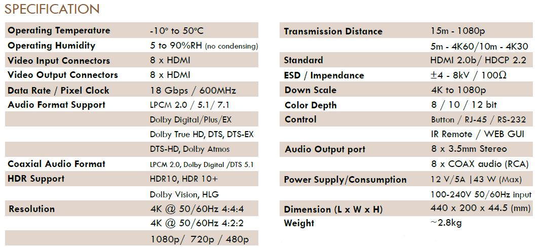 - HDMI 2.0, HDCP 2.2/1.4 Compliant